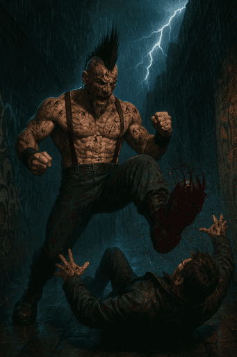 WITH A RAZOR GRIN AND BLOODIED FISTS,